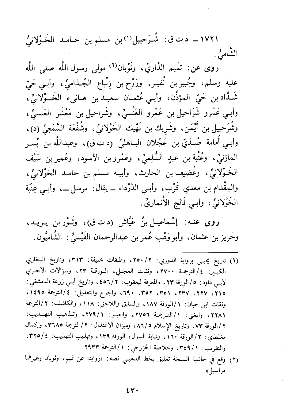 1721 - د ت ق: شرحبيل بن مسلم بن حامد الخولاني الشامي (1) .