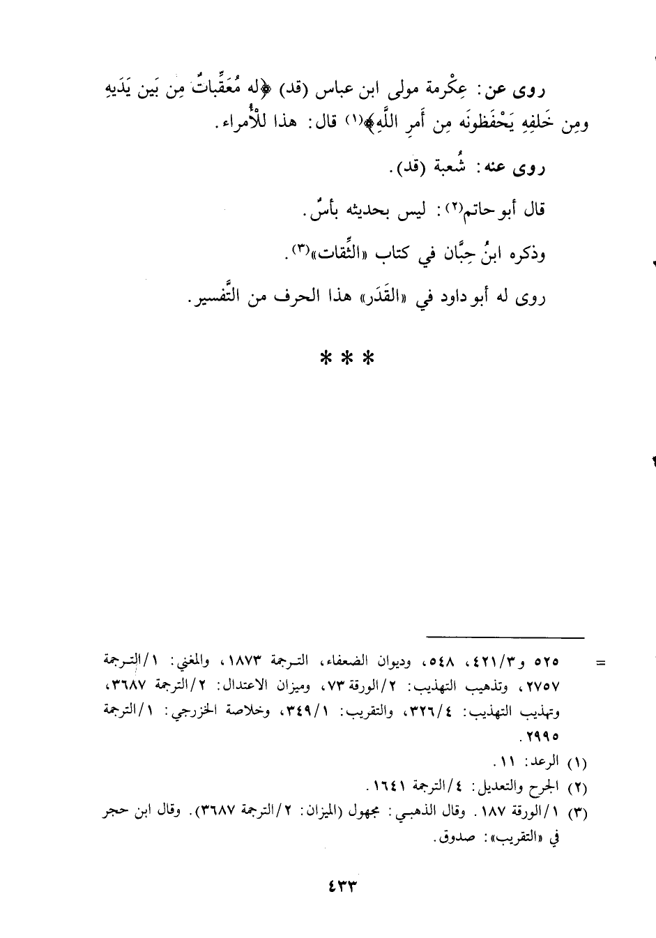 رَوَى عَن: عكرمة مولى ابْن عباس (قد) (له معقبات من بين يديه ومن خلفه يحفظونه من أمر اللَّه) (1) قال: هذا للأمراء.