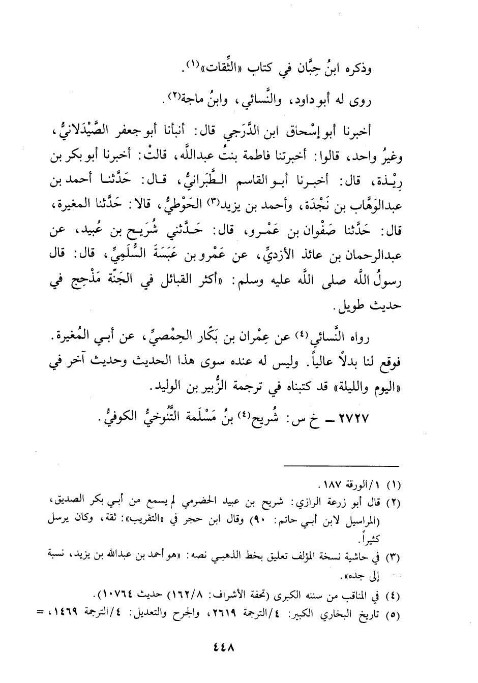 2727 - خ س: شريح بن مسلمة التنوخي الكوفي (4) .