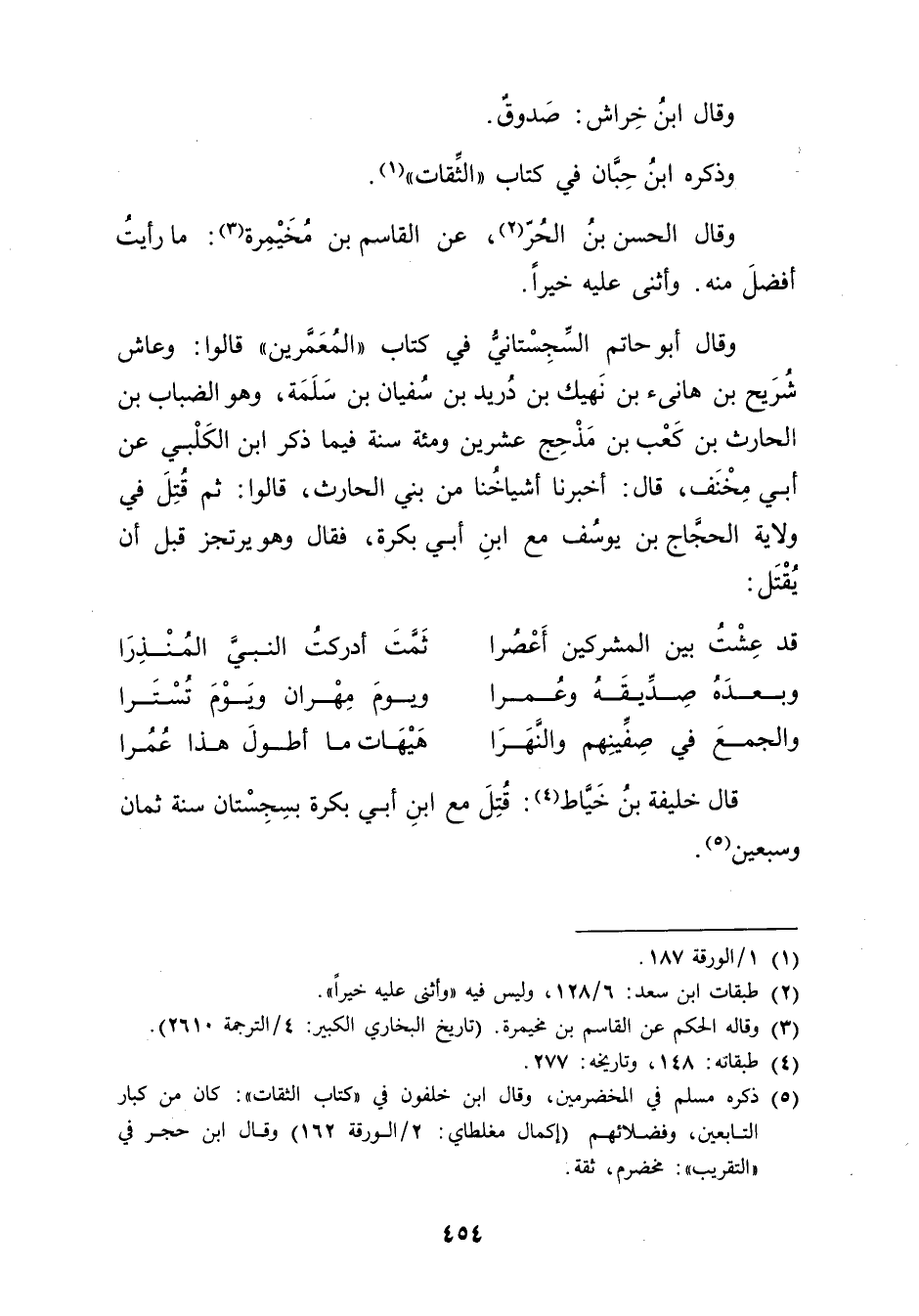 (5) ذكره مسلم في المخضرمين، وَقَال ابن خلفون فِي "كتاب الثقات": كان من كبار التابعين، وفضلائهم (إكمال مغلطاي: 2 / الورقة 162) وَقَال ابن حجر في "التقريب": مخضرم، ثقة.