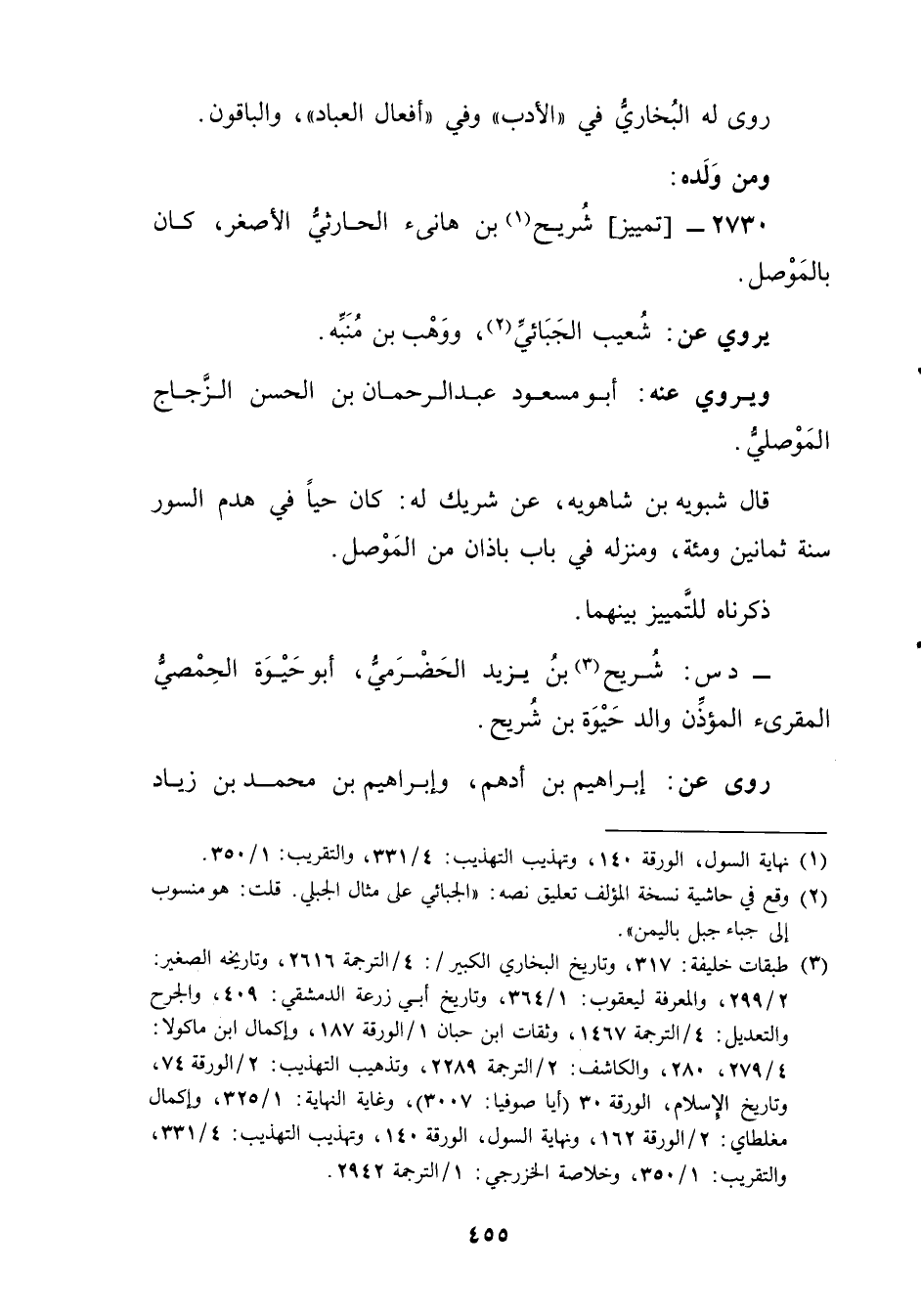 2730 - تمييز شريح بن هانئ الحارثي الأصغر (1) ، كَانَ بالموصل.