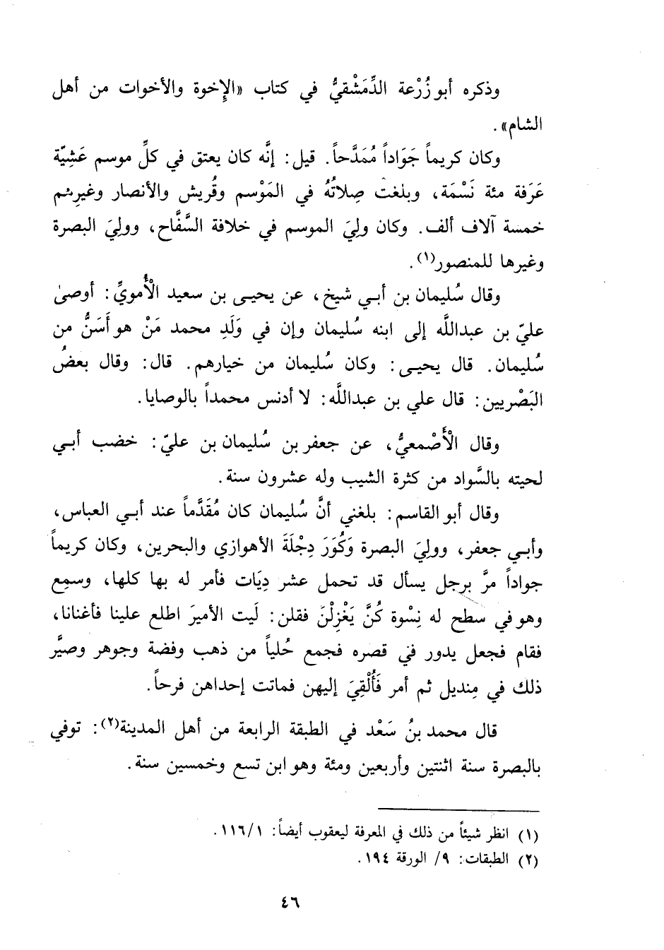 قال يحيى: وكَانَ سُلَيْمان من خيارهم. قال: وَقَال بعض البَصْرِيّين: قال علي بن عَبد الله: لاأدنس محمدا بالوصايا.
