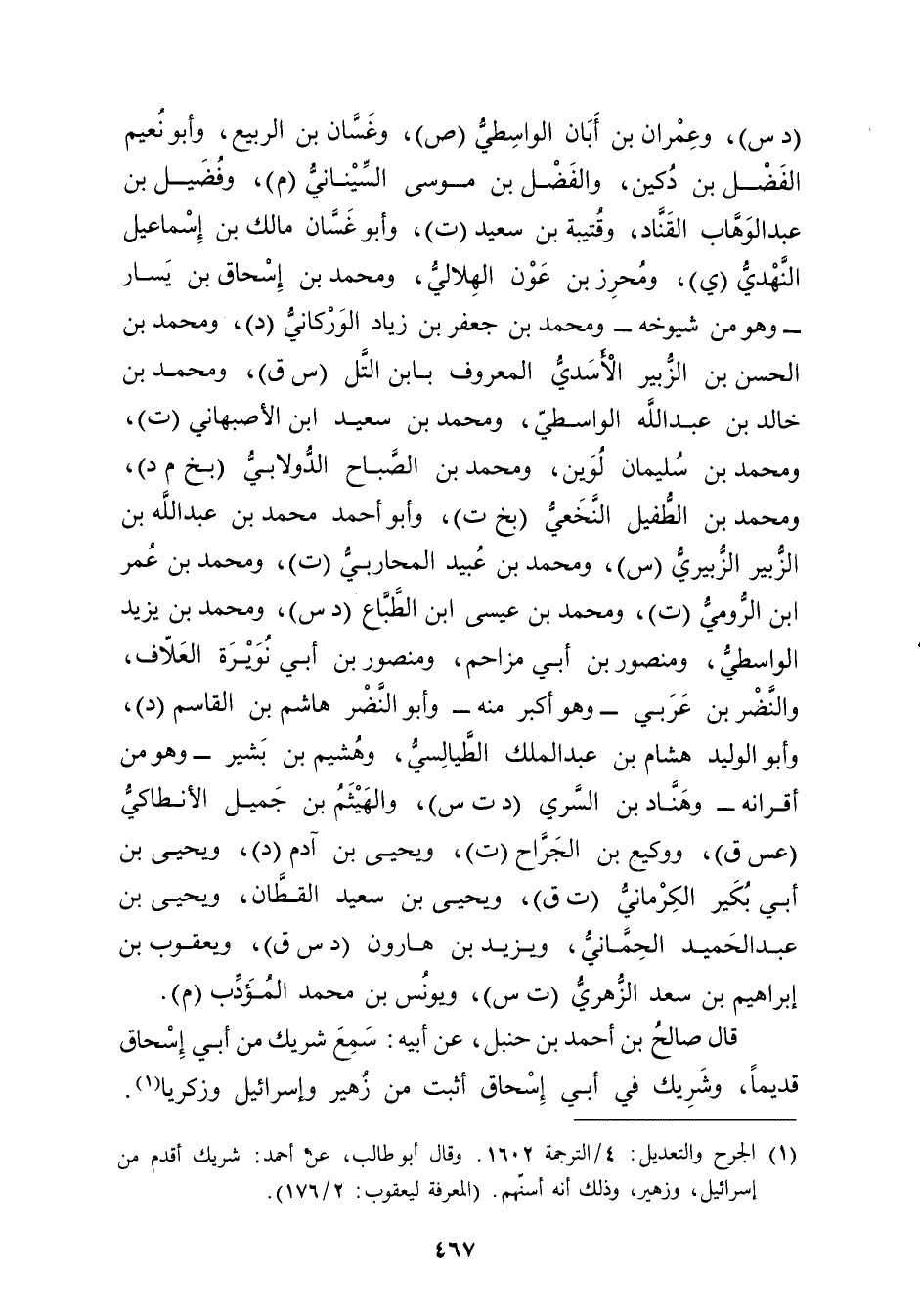 (1) الجرح والتعديل: 4 / الترجمة 1602. وَقَال أبو طالب، عَن أحمد: شَرِيك أقدم من إسرائيل، وزهير، وذلك أنه أسنهم. (المعرفة ليعقوب: 2 / 176) .