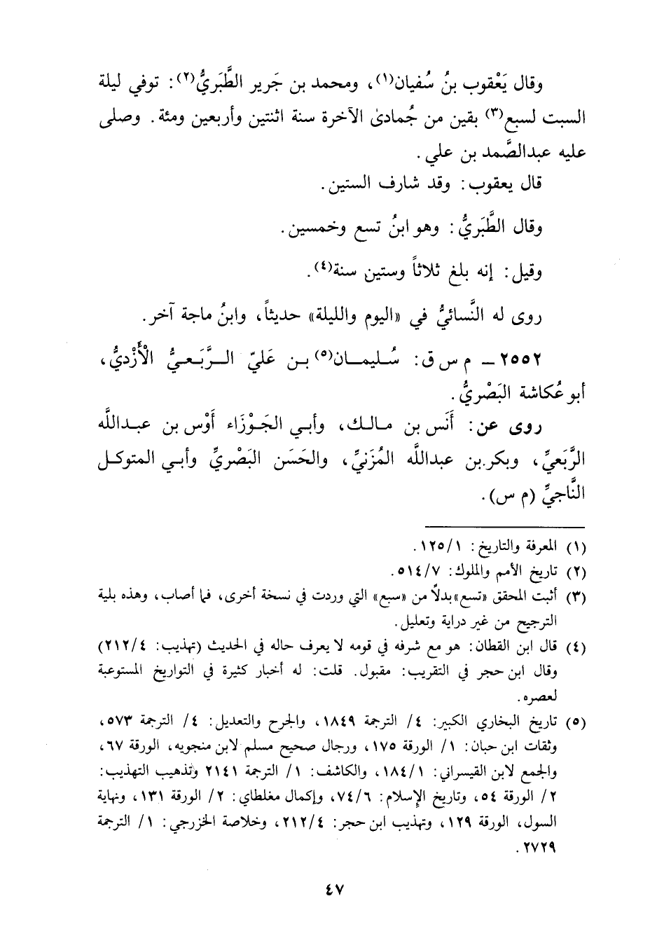 (5) تاريخ البخاري الكبير: 4 / الترجمة 1849، والجرح والتعديل: 4 / الترجمة 573، وثقات ابن حبان: 1 / الورقة 175، ورجال صحيح مسلم لابن منجويه، الورقة 67، والجمع لابن القيسراني: 1 / 184، والكاشف: 1 / الترجمة 2141 وتذهيب التهذيب: 2 / الورقة 54، وتاريخ الاسلام: 6 / 74، وإكمال مغلطاي: 2 / الورقة 131، ونهاية السول، الورقة 129، وتهذيب ابن حجر: 4 / 212، وخلاصة الخزرجي: 1 / الترجمة 2729