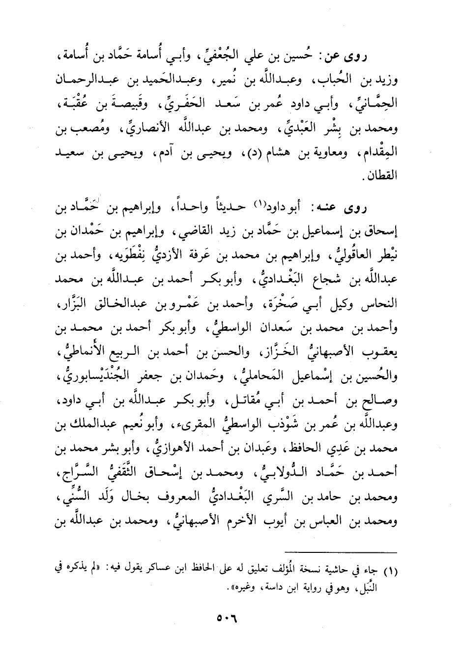 (1) جاء في حاشية نسخة المؤلف تعليق له على الحافظ ابن عساكر يقول فيه: لم يذكره في النبل، وهو في رواية ابن داسة، وغيره".
