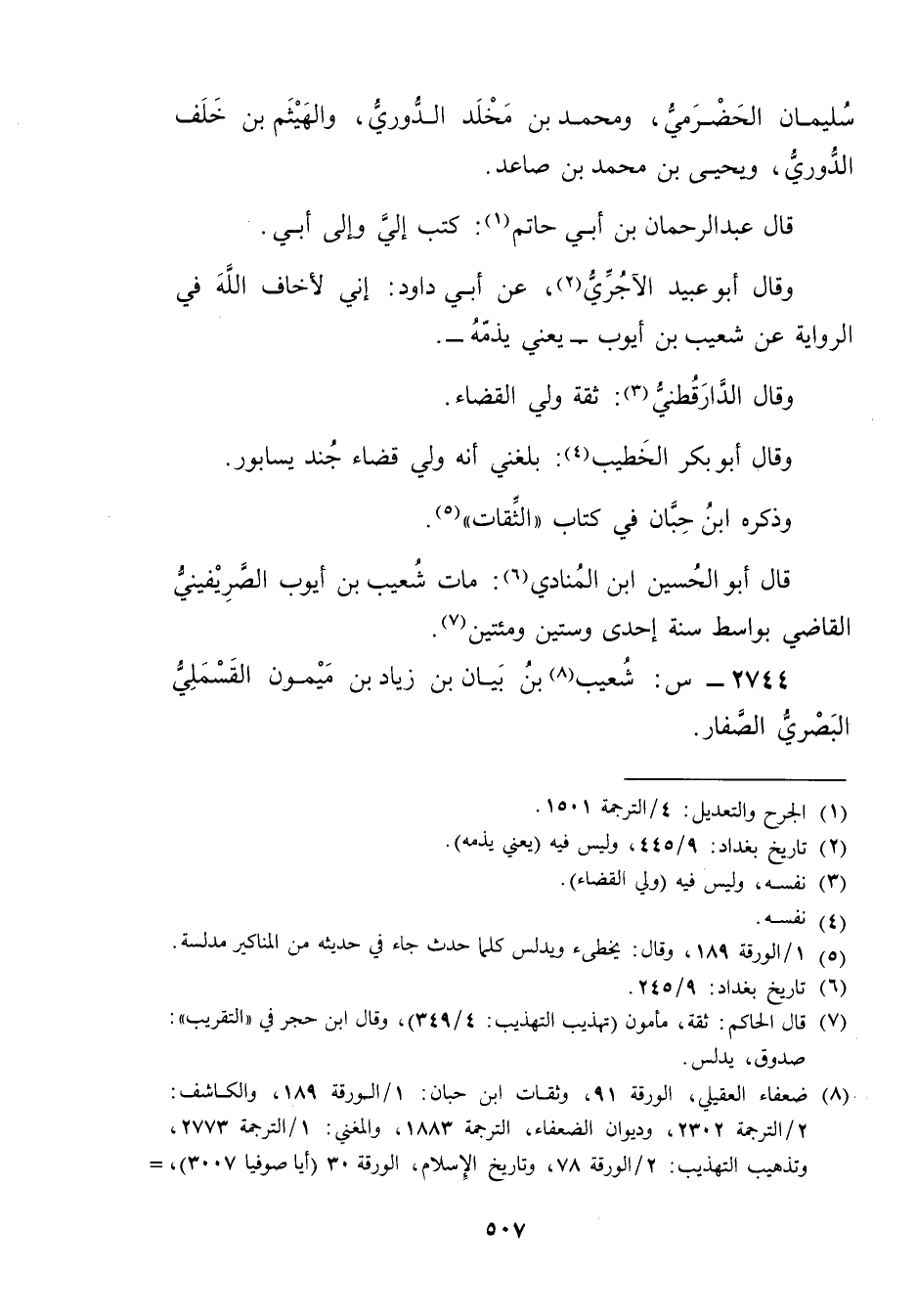 (8) ضعفاء العقيلي، الورقة 91، وثقات ابن حبان: 1 / الورقة 189، والكاشف: 2 / الترجمة 2302، وديوان الضعفاء، الترجمة 1883، والمغني: 1 / الترجمة 2773، وتذهيب التهذيب: 2 / الورقة 78، وتاريخ الاسلام، الورقة 30 (أيا صوفيا 3007) ، =