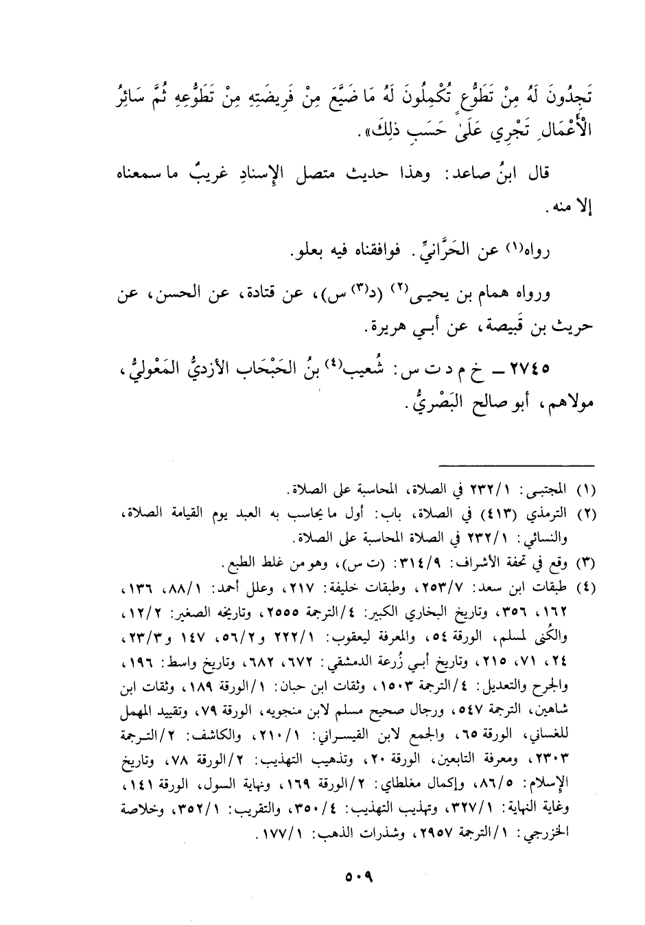 (2) التِّرْمِذِيّ (413) في الصلاة، باب: أَوَّلَ مَا يُحَاسَبُ بِهِ الْعَبْدُ يوم القيامة الصلاة، والنَّسَائي: 1 / 232 في الصلاة المحاسبة على الصلاة.