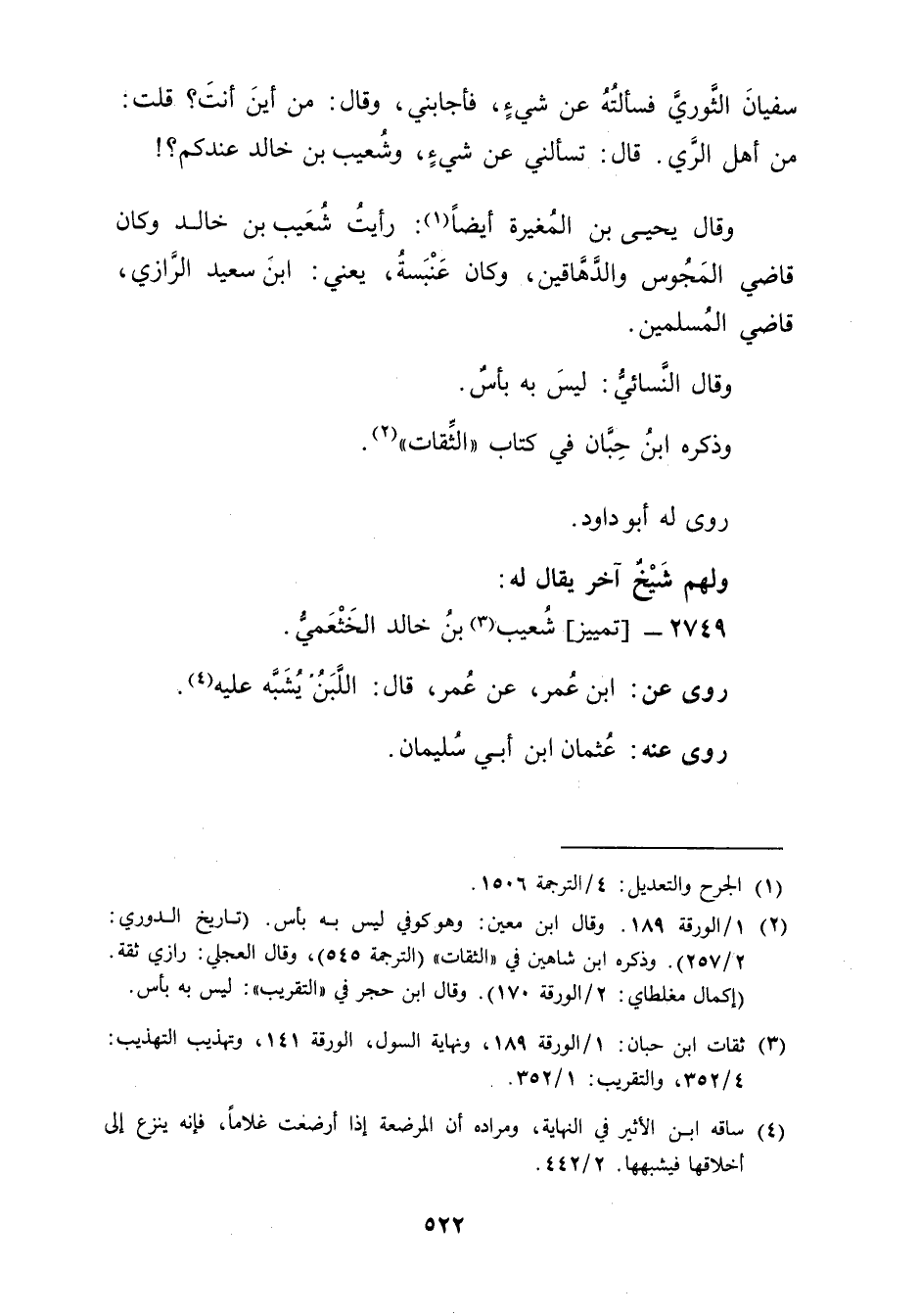 2749 - تمييز شعيب بن خالد الخثعمي (3) .