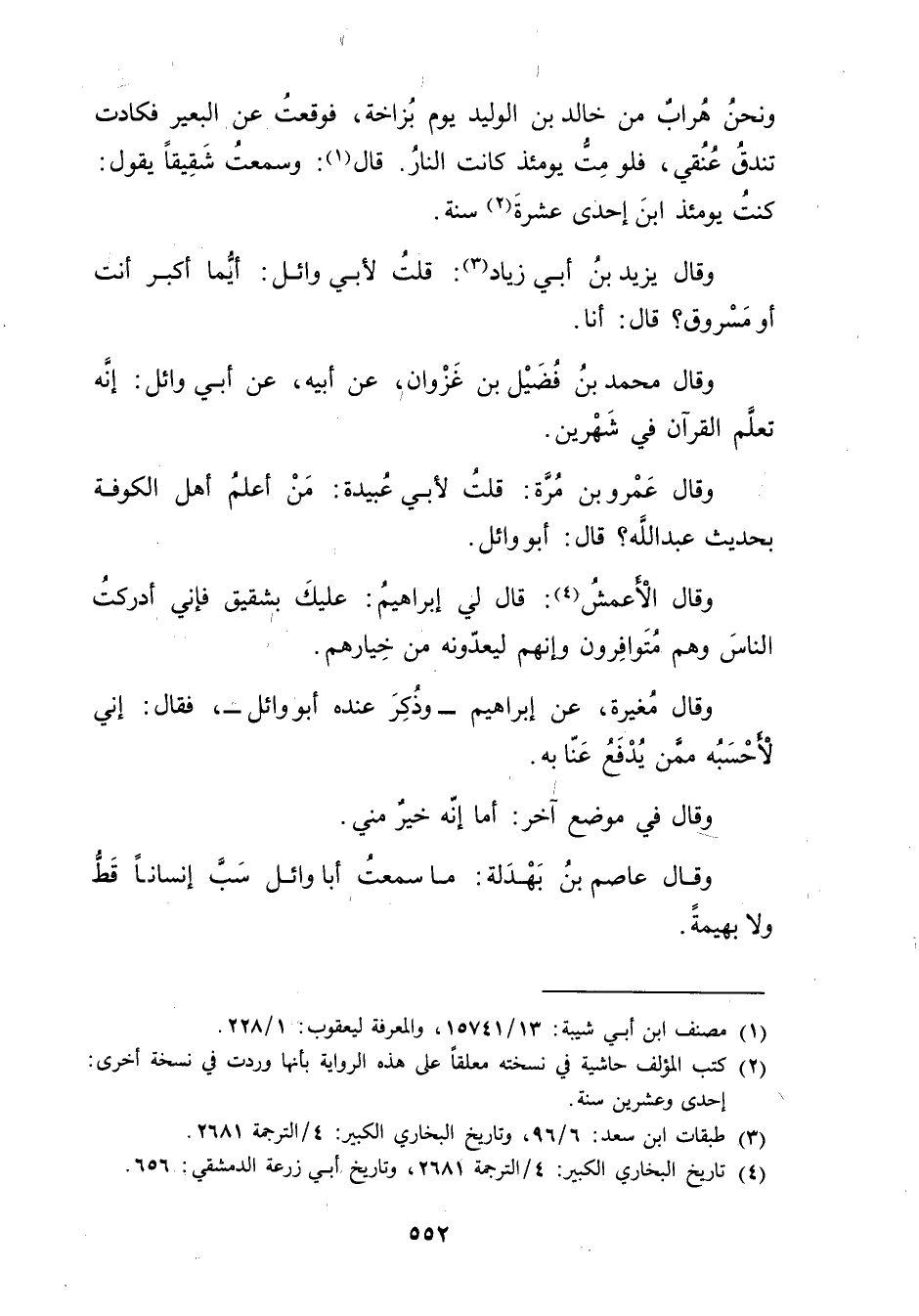 وَقَال يزيد بْن أَبي زياد (3) : قلتُ لأبي وائل: أيما أكبر أنت أو مسروق؟ قال: أنا.