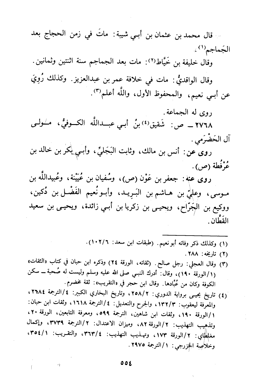 (4) تاريخ يحيى برواية الدوري: 2 / 258، وتاريخ البخاري الكبير: 4 / الترجمة 2684، والمعرفة ليعقوب: 3 / 132، والجرح والتعديل: 4 / الترجمة 1618، وثقات ابن حبان: 1 / الورقة 190، وثقات ابن شاهين، الترجمة 599، ومعرفة التابعين، الورقة 20، وتذهيب التهذيب: 2 / الورقة 82، وميزان الاعتدال: 2 / الترجمة 3739، وإكمال مغلطاي: 2 / الورقة 173، وتهذيب التهذيب: 4 / 363، والتقريب: 1 / 354، وخلاصة الخزرجي: 1 / الترجمة 2975.