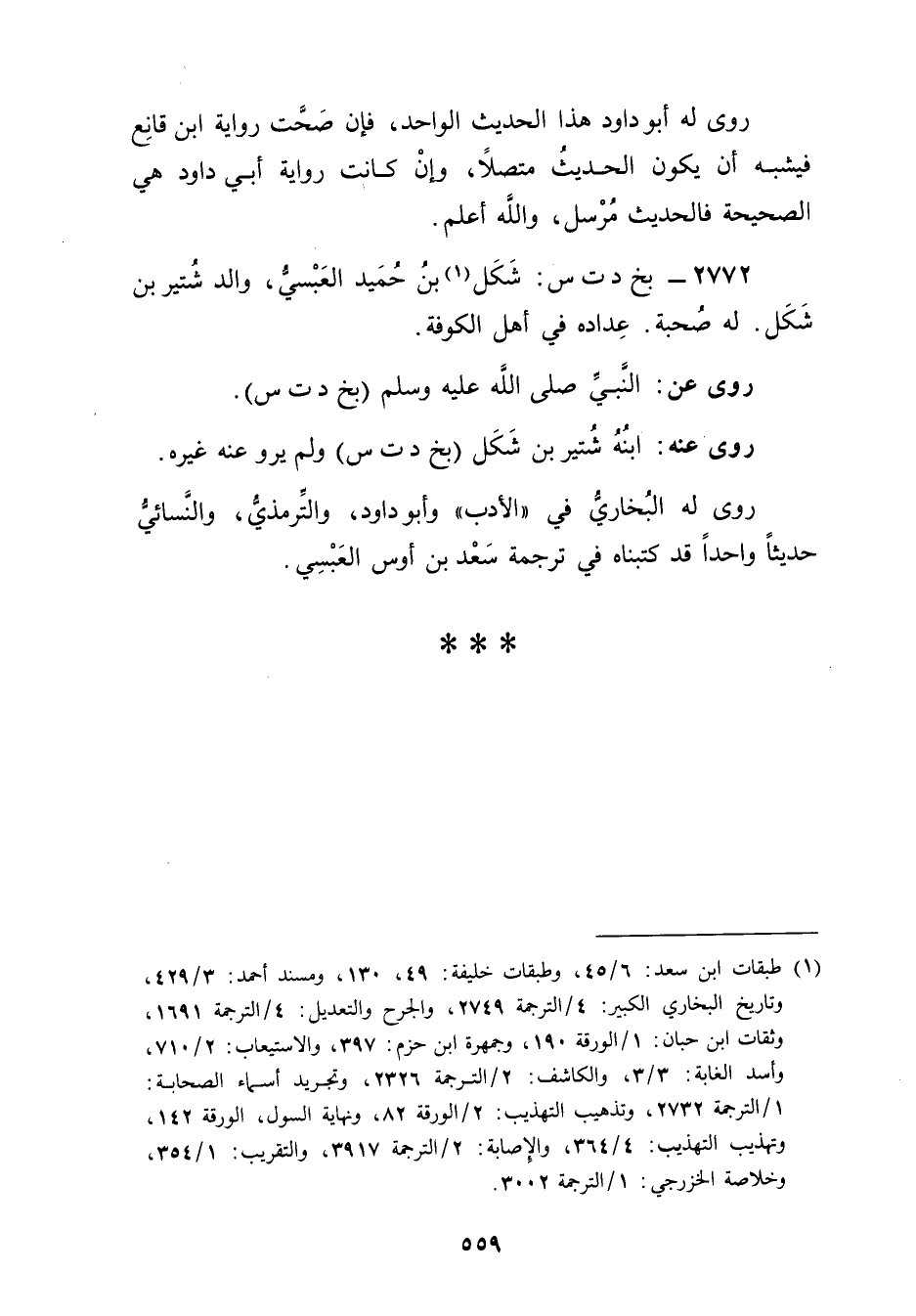 2772 - بخ د ت س: شكل بن حميد العبسي (1) ، والد شتير بْن شكل. له صحبة. عداده في أهل الكوفة.