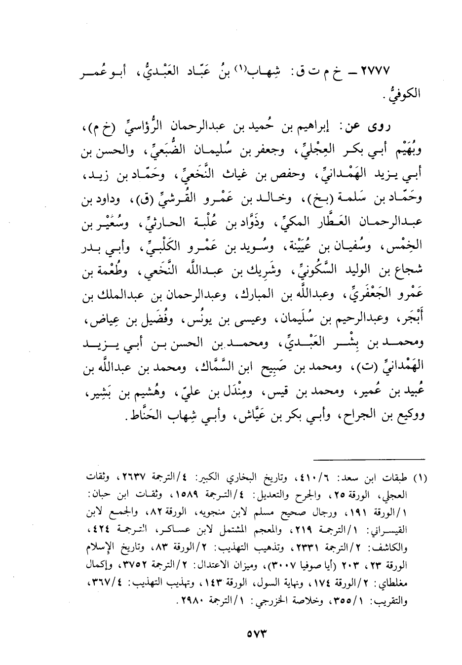 2777 - خ م ت ق: شهاب بن عباد العبدي (1) ، أَبُو عُمَر الكوفي.
