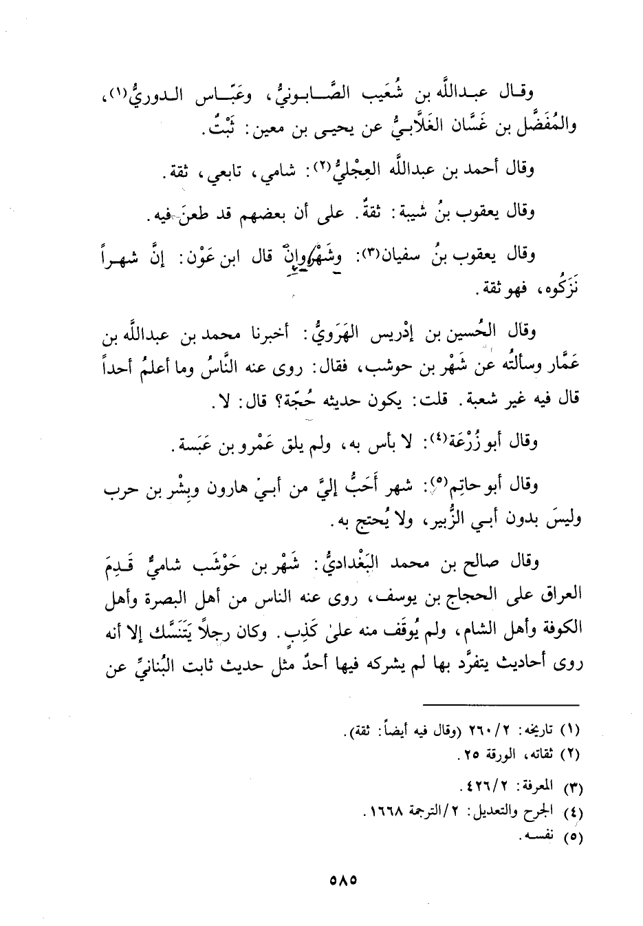 وَقَال يعقوب بن سفيان (3) : وشهروان قال ابن عون: إن شهرا نزكوه، فهو ثقة.