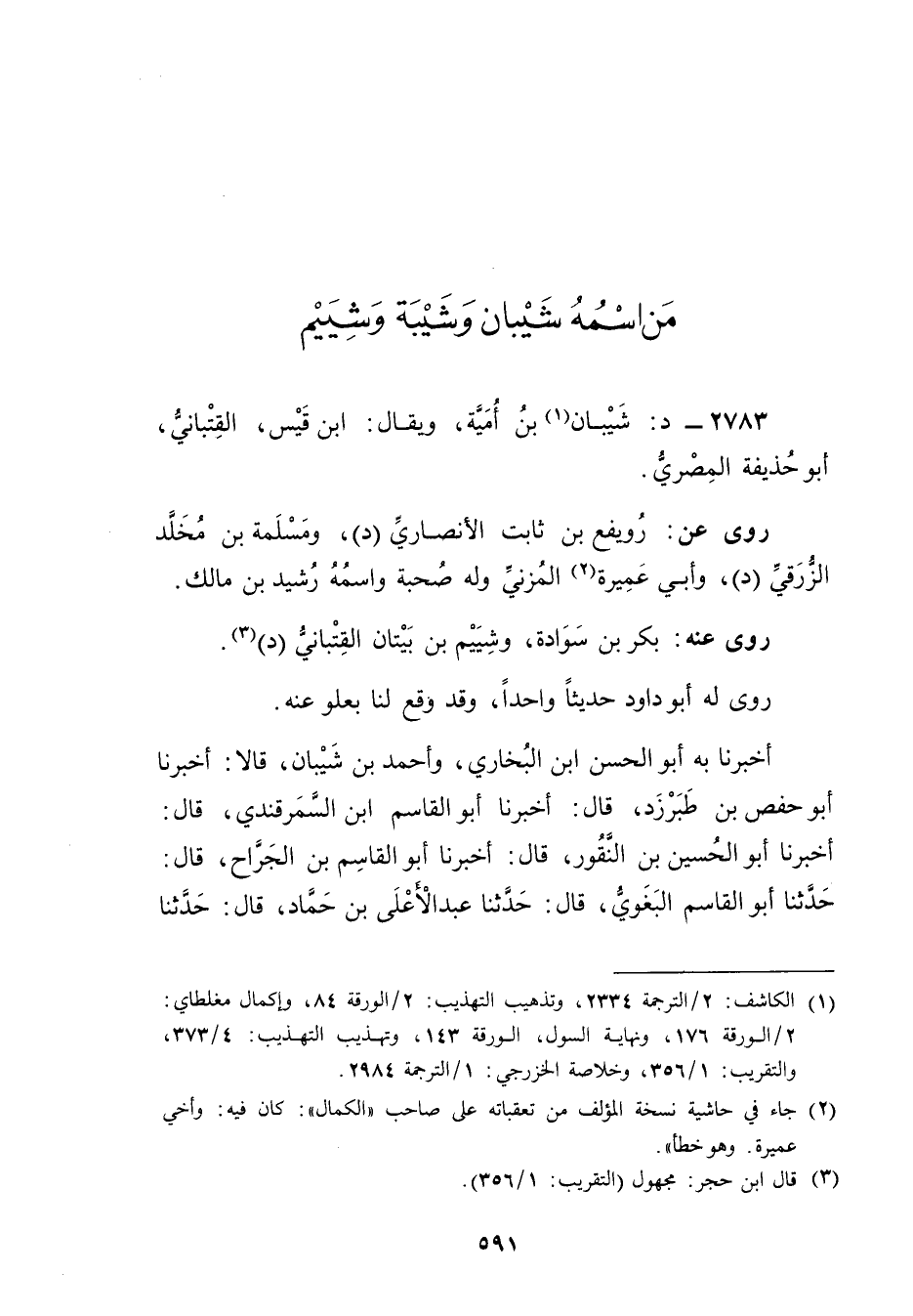 2783 - د: شيبان بن أمية (1) ، ويُقال: ابن قيس، القتباني، أَبُو حذيفة المِصْرِي.