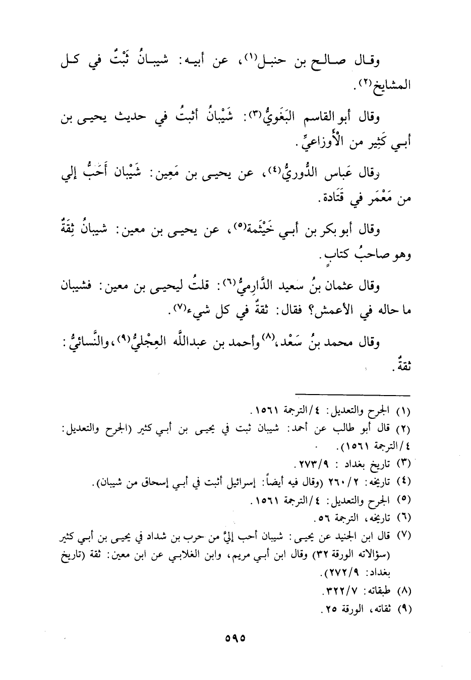 (2) قال أبو طالب عَن أحمد: شيبان ثبت فِي يحيى بْن أَبي كثير (الجرح والتعديل: 4 / الترجمة 1561) .