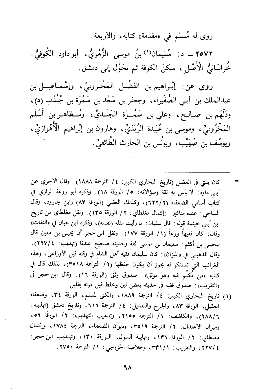 2572 - د: سُلَيْمان بن مُوسَى الزُّهْرِيّ (1) ، أَبُو داود الكوفي.