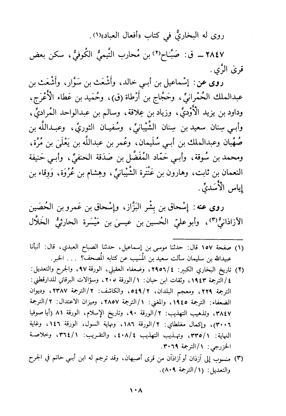 2847 - ق: صباح بن محارب التَّيْمِيّ الكوفي (2) ، سكن بعض قرى الري.