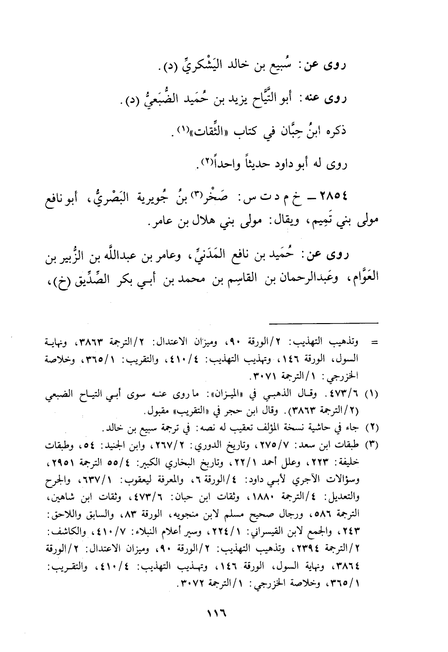 2854 - خ م د ت س: صخر بن جويرية البَصْرِيّ (3) ، أبو نافع مولى بني تميم، ويُقال: مولى بني هلال بن عامر.