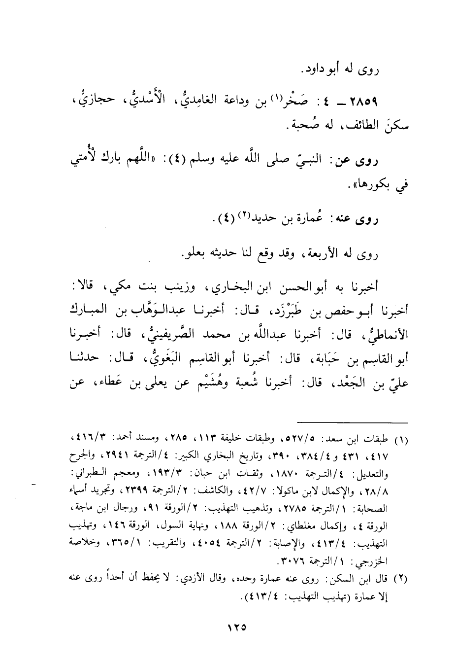 2859 - 4: صخر بن وداعة الغامدي (1) ، الأسدي، حجازي، سكن الطائف، له صحبة.