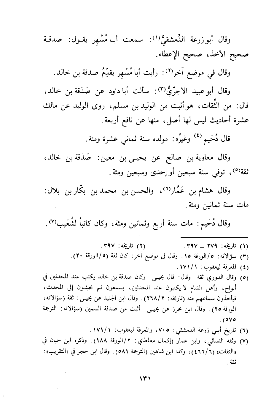 (6) تاريخ أبي زرعة الدمشقي: 705، والمعرفة ليعقوب: 1 / 171.