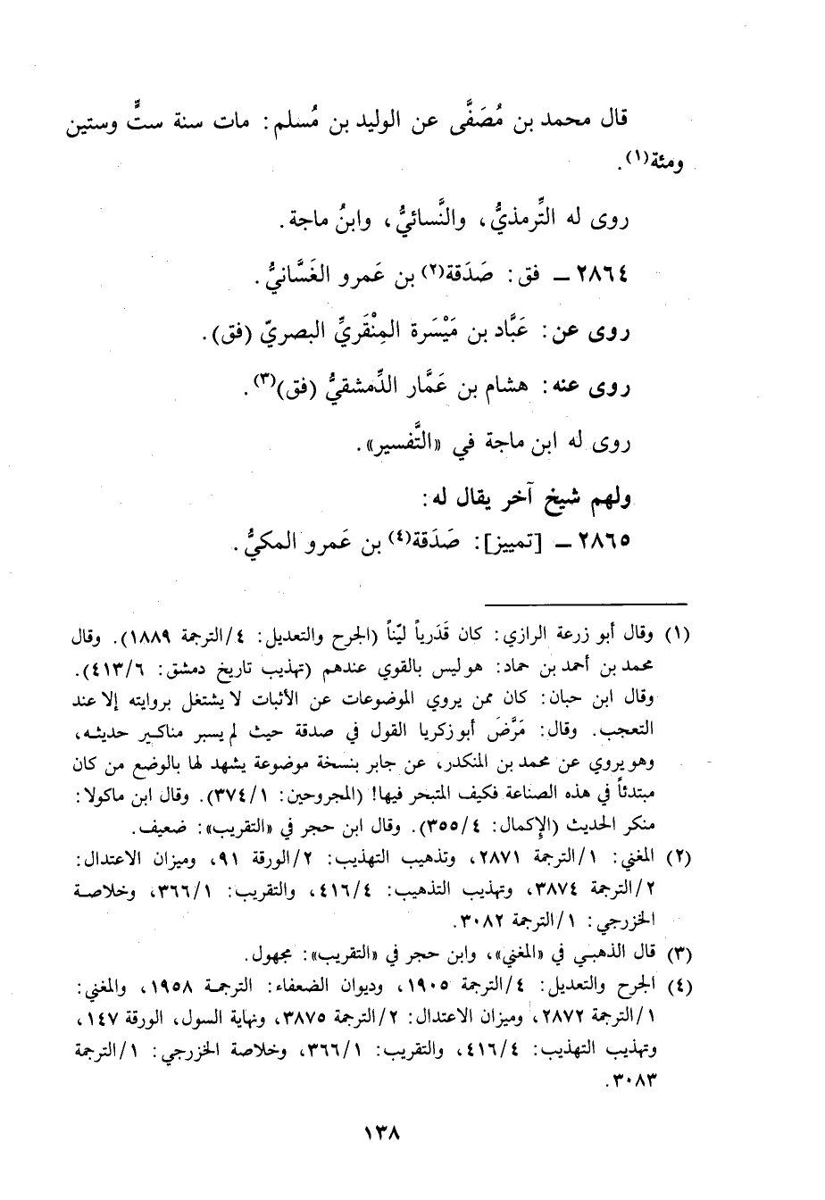 2865 - تمييز: صدقة بن عَمْرو المكي (4) .