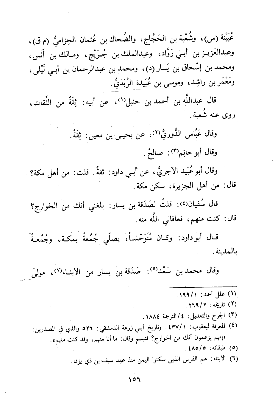 (4) المعرفة ليعقوب: 1 / 437. وتاريخ أبي زرعة الدمشقي: 526 والذي في المصدرين: إنهم يزعمون أنك من الخوارج؟ فتبسم وَقَال: ما أنا منهم، وقد كنت منهم.