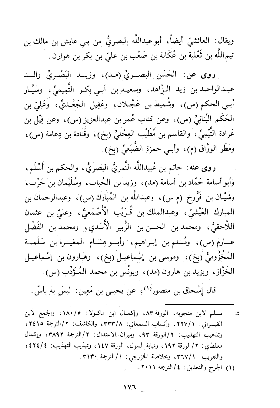 = مسلم لابن منجويه، الورقة 83، وإكمال ابن ماكولا: 5 / 180، والجمع لابن القيسراني: 1 / 227، وأنساب السمعاني: 8 / 333، والكاشف: 2 / الترجمة 2415، وتذهيب التهذيب: 2 / الورقة 93، وميزان الاعتدال: 2 / الترجمة 3892، وإكمال مغلطاي: 2 / الورقة 192، ونهاية السول، الورقة 147، وتهذيب التهذيب: 4 / 424، والتقريب: 1 / 367، وخلاصة الخزرجي: 1 / الترجمة 3130.