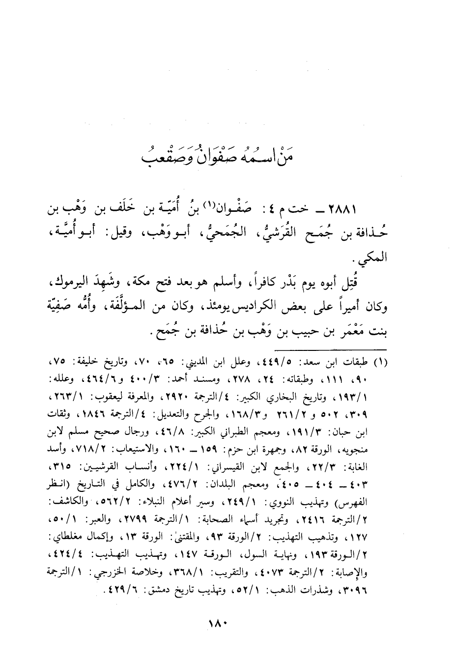 2881 - خت م 4: صفوان بن أمية بن خلف بن وهب بن حذافة بن جمح الْقُرَشِيّ (1) ، الجمحي، أبو وهب، وقيل: أبو أمية، المكي.