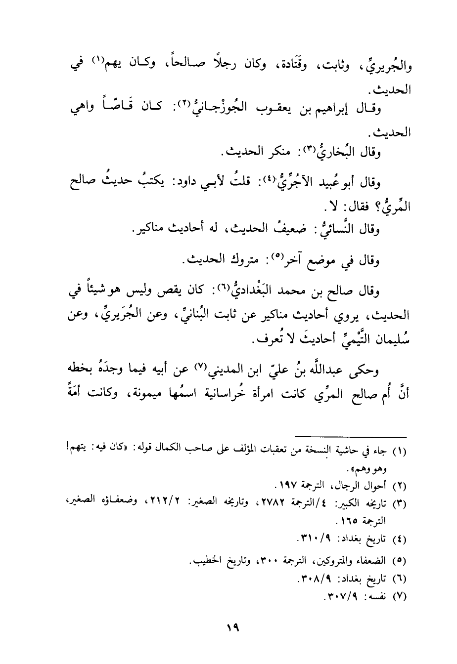 وَقَال أَبُو عُبَيد الآجري (4) : قلتُ لأبي دَاوُد: يكتب حديث صالح المري؟ فقال: لا.