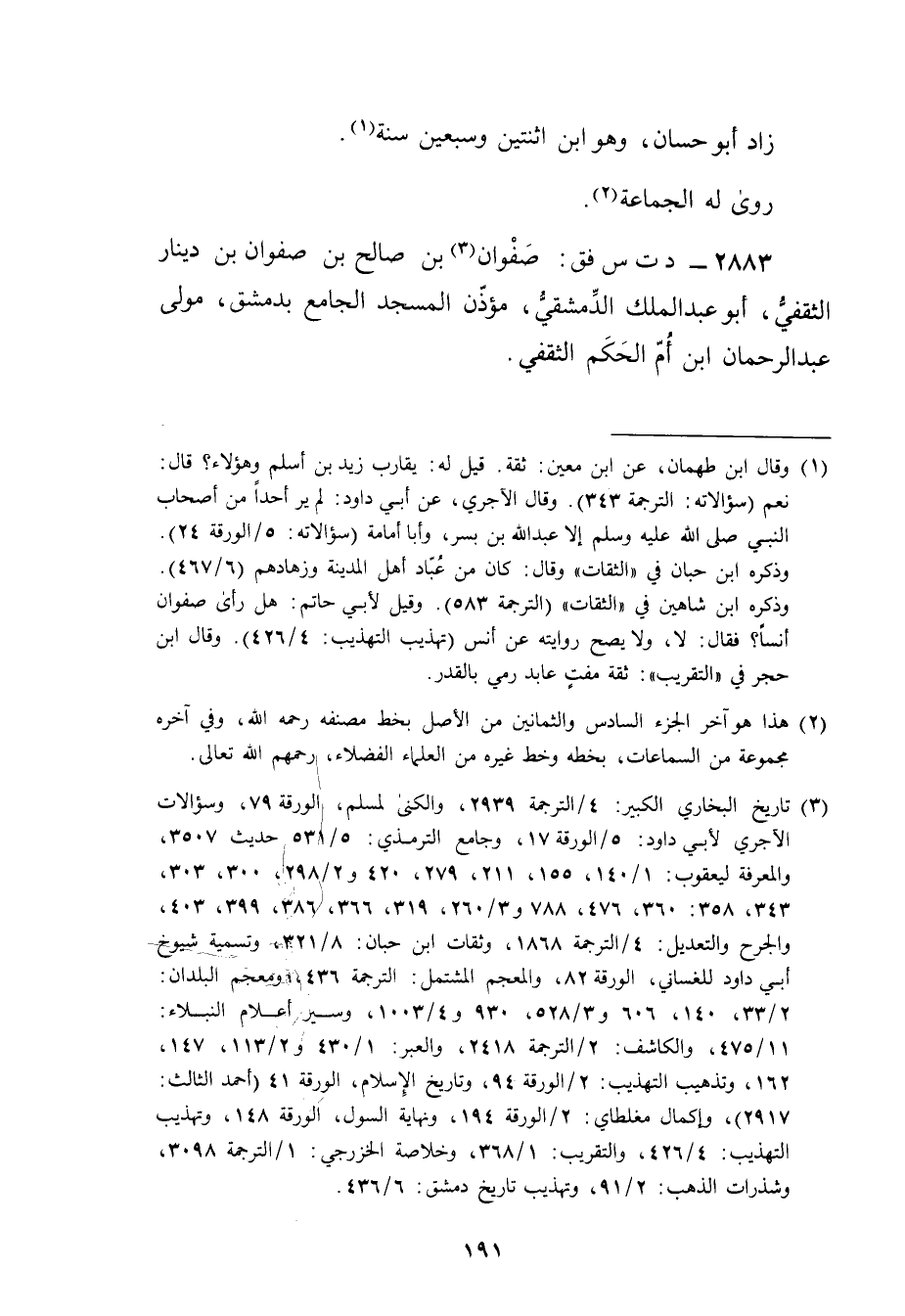 2883 - د ت س فق: صفوان بن صالح بن صفوان بن دينار الثقفي (3) ، أبو عبد الملك الدمشقي، مؤذن المسجد الجامع بدمشق، مولى عبد الرحمن ابن أم الحكم الثقفي.