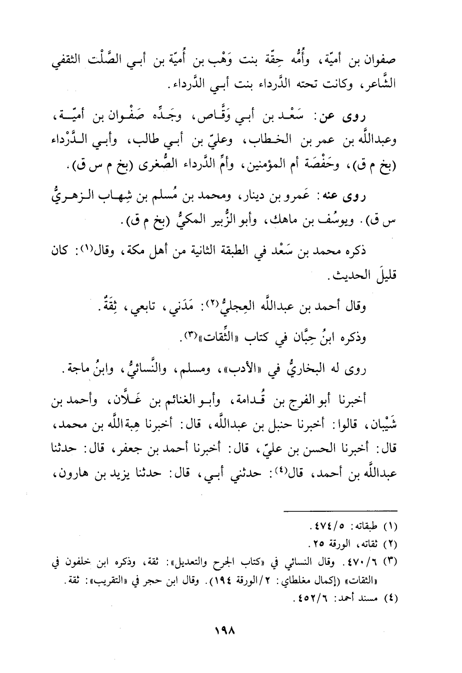 (3) 6 / 470. وَقَال النَّسَائي في "كتاب الجرح والتعديل": ثقة، وذكره ابن خلفون في "الثقات" (إكمال مغلطاي: 2 / الورقة 194) . وَقَال ابن حجر في "التقريب": ثقة.