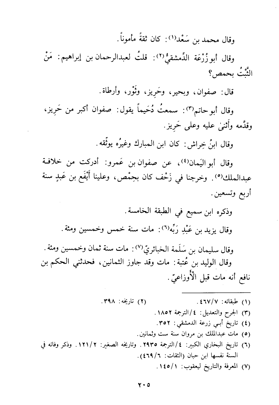 (6) تاريخ البخاري الكبير: 4 / الترجمة 2935. وتاريخه الصغير: 2 / 121. وذكره وفاته في السنة نفسها ابن حبان (الثقات: 6 / 469) .