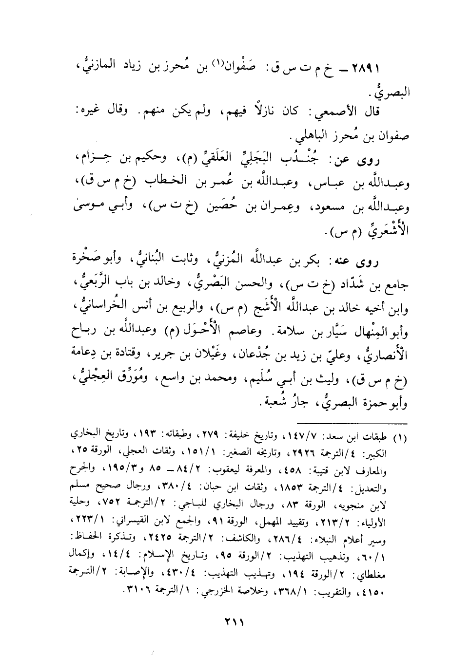 2891 - خ م ت س ق: صفوان بن محرز بن زياد المازني (1) ، البَصْرِيّ.