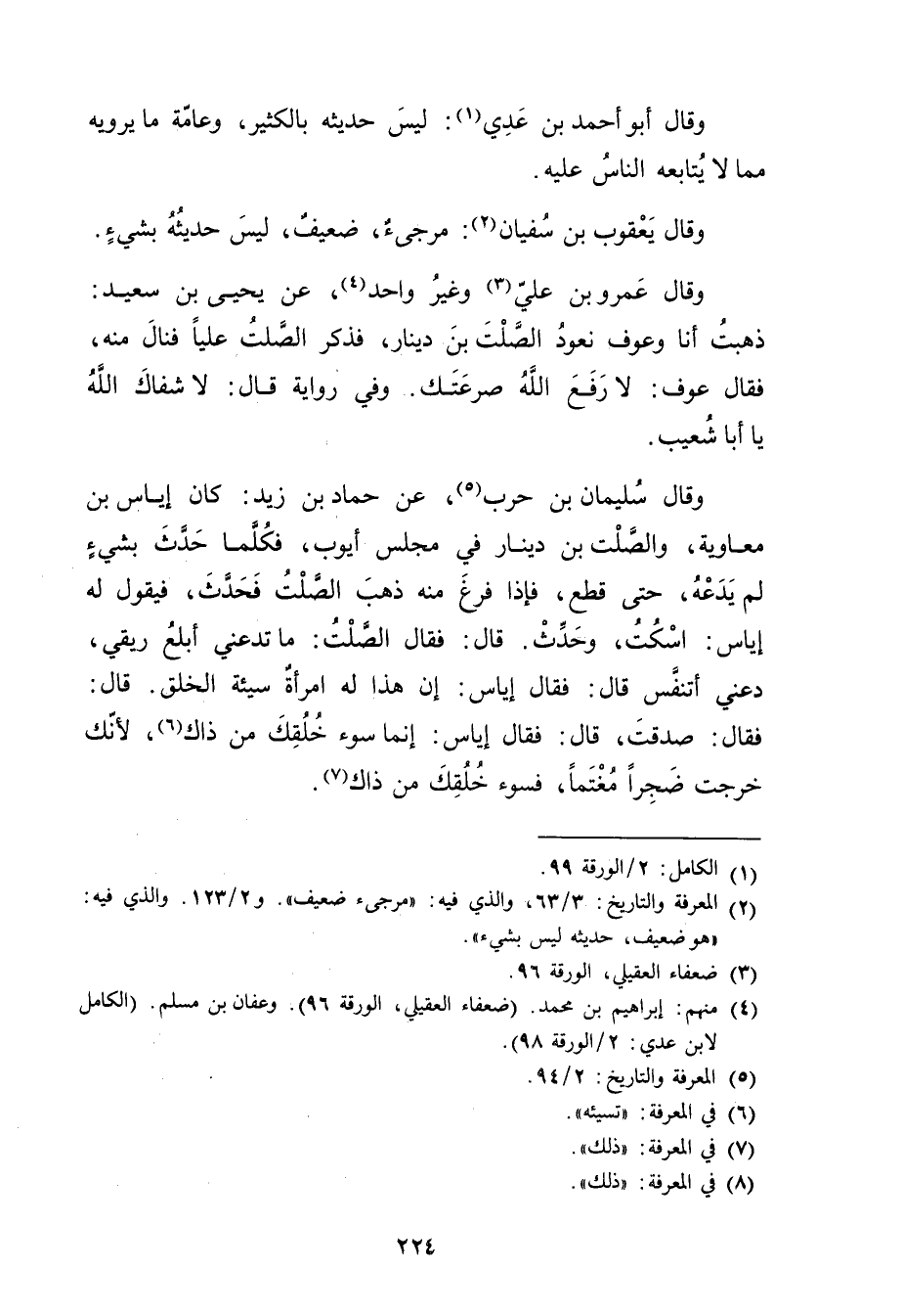 وعفان بن مسلم. (الكامل لابن عدي: 2 / الورقة 98) .