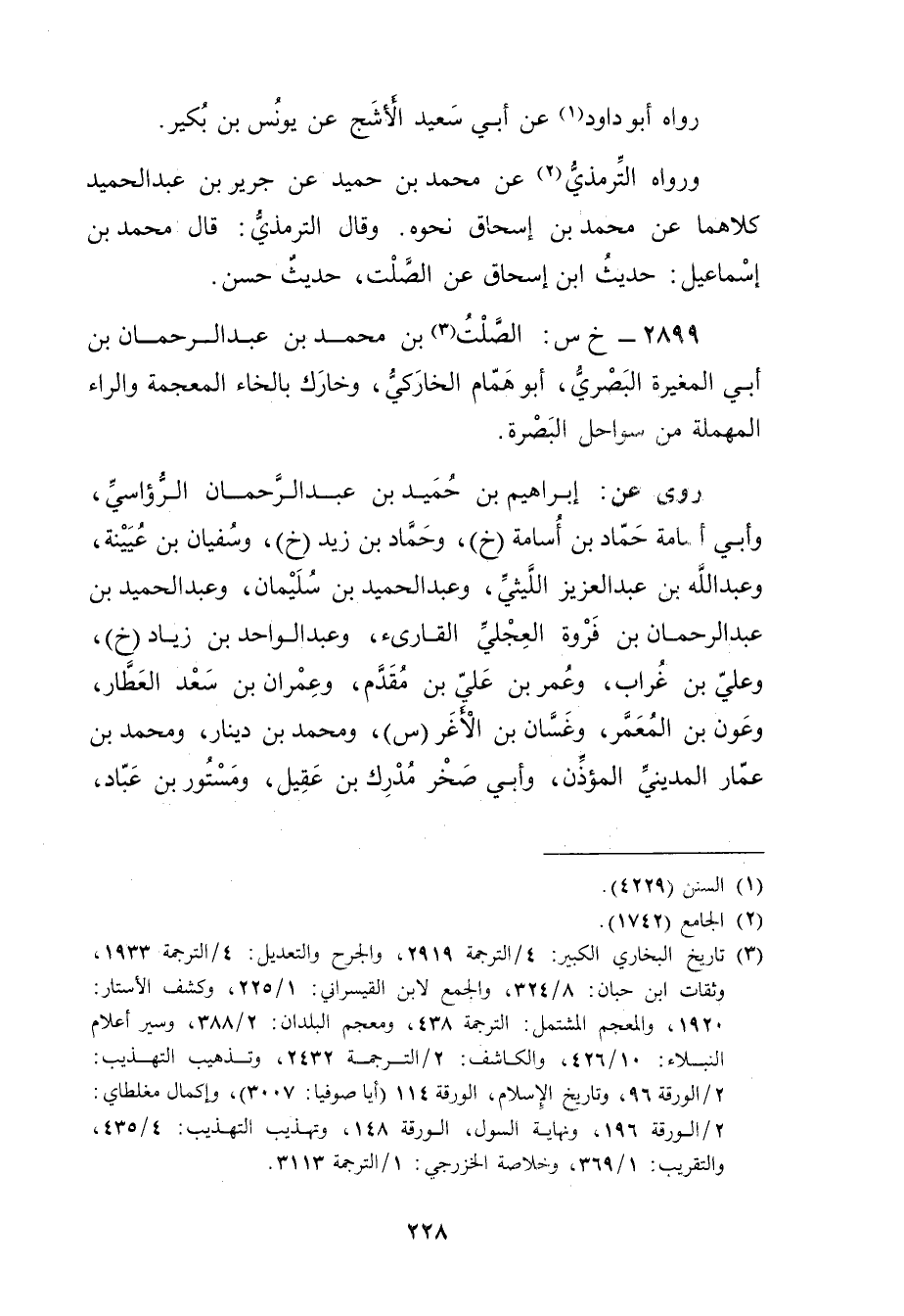 2899 - خ س: الصلت بن محمد بن عبد الرحمن بن أَبي المغيرة البَصْرِيّ (3) ، أبو همام الخاركي، وخارك بالخاء المعجمة والراء المهملة من سواحل البصرة.