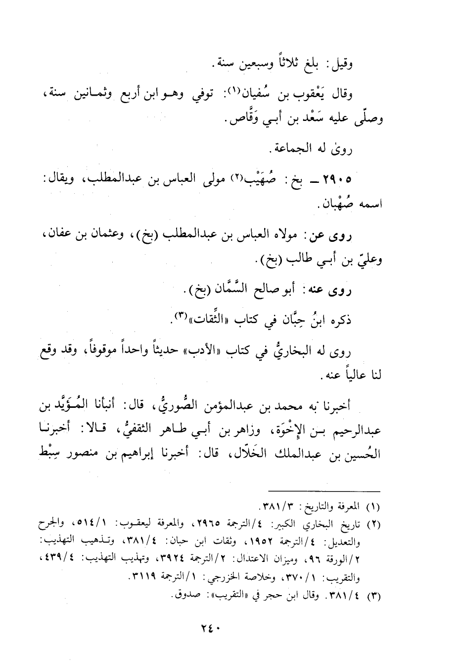 2905 - بخ: صهيب مولى العباس بن عبد المطلب (2) ، ويُقال: اسمه صهبان.
