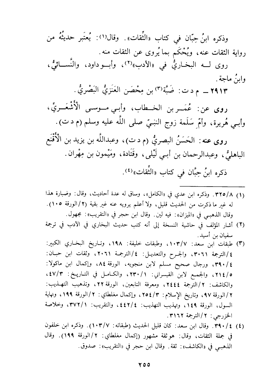2913 - م د ت: ضبة بن محصن العنزي البَصْرِيّ (3) .