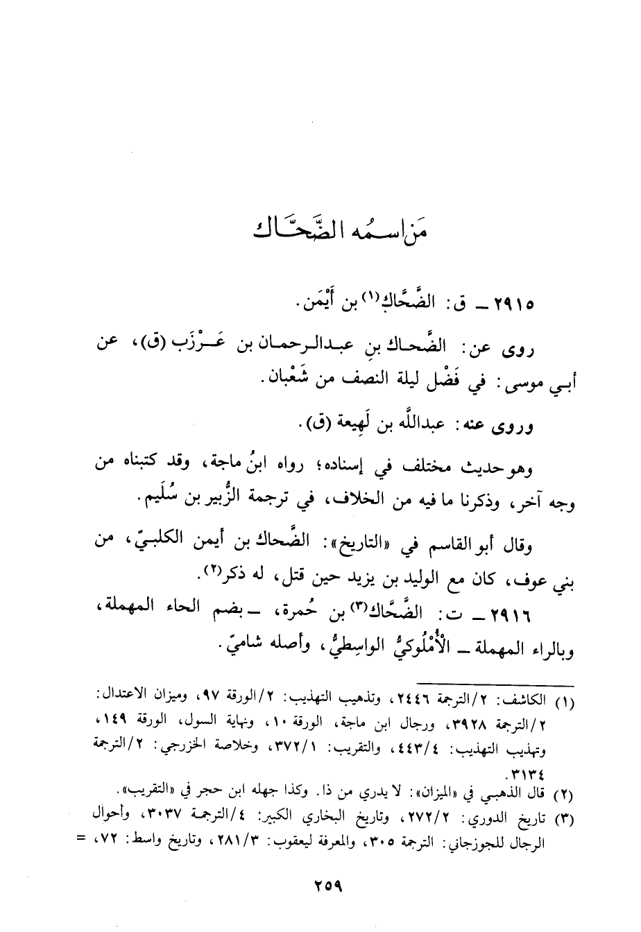 (1) الكاشف: 2 / الترجمة 2446، وتذهيب التهذيب: 2 / الورقة 97، وميزان الاعتدال: 2 / الترجمة 3928، ورجال ابن ماجة، الورقة 10، ونهاية السول، الورقة 149، وتهذيب التهذيب: 4 / 443، والتقريب: 1 / 372، وخلاصة الخزرجي: 2 / الترجمة 3134.