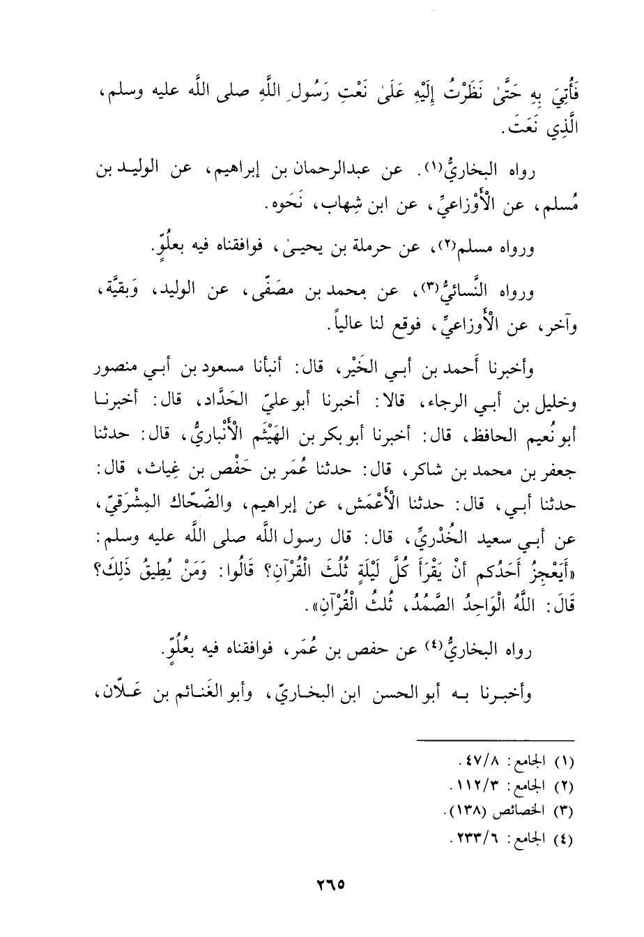 رَوَاهُ الْبُخَارِيُّ (4) عَنْ حَفْصِ بْنِ عُمَر، فَوَافَقْنَاهُ فِيهِ بِعُلُوٍّ.