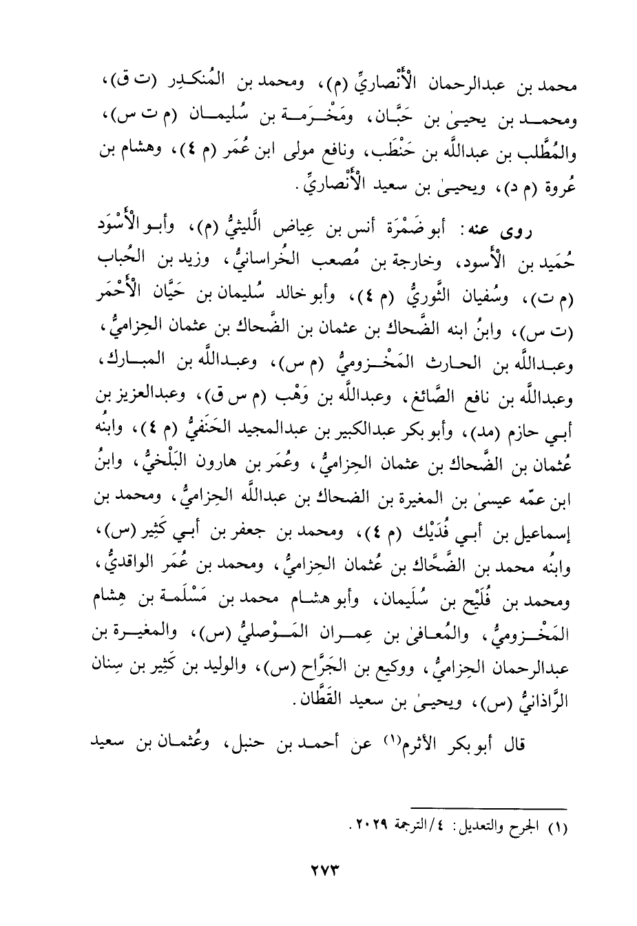 قال أبو بكر الأثرم (1) عَن أحمد بن حنبل، وعثمان بن سَعِيد