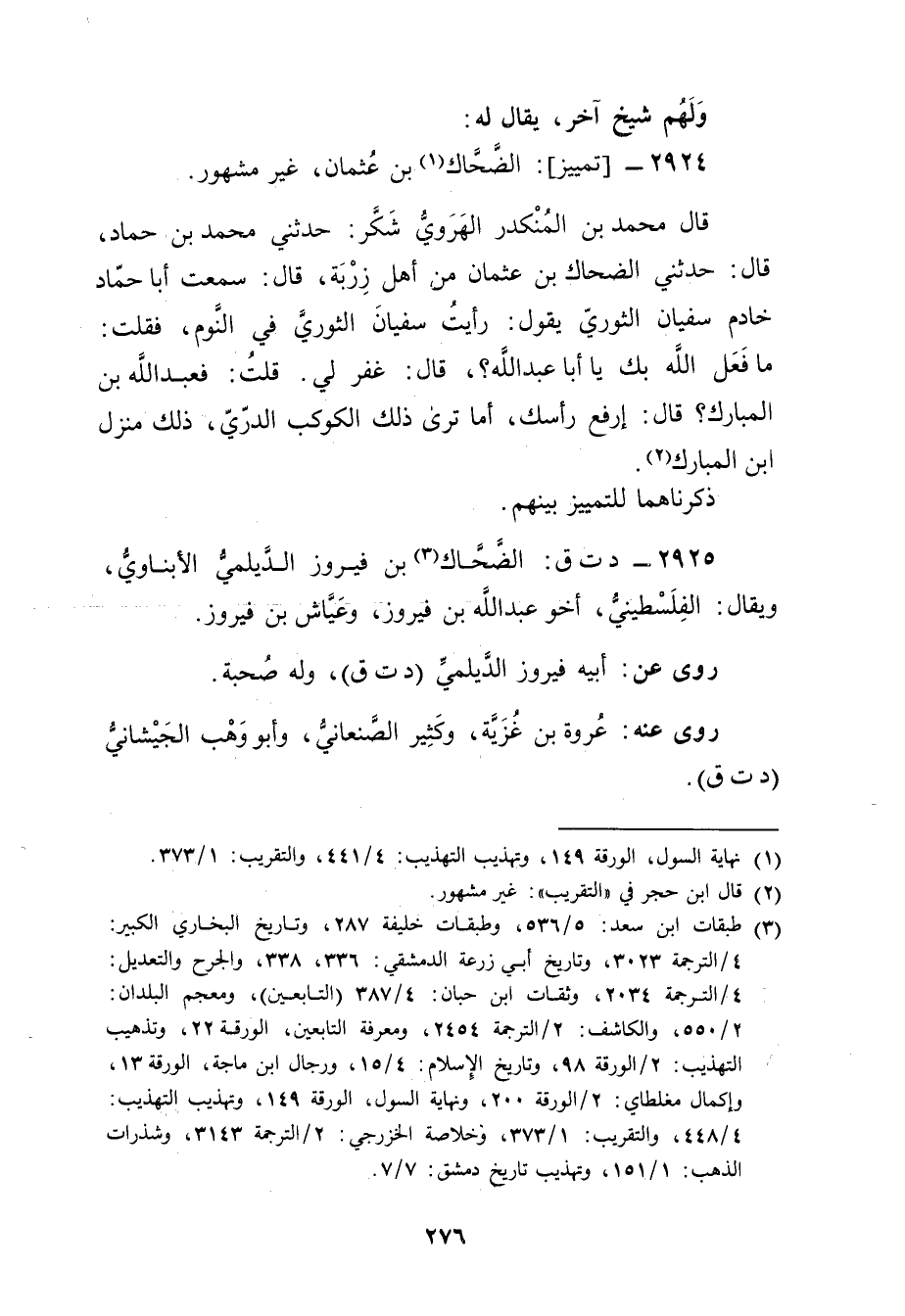 2924 - تمييز الضحاك بن عثمان (1) ، غير مشهور.