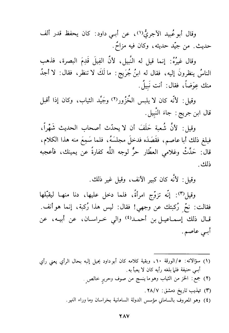 (2) جمع: الخز من الثياب وهو ما ينسج من صوف وحرير خالص (3) تهذيب تاريخ دمشق: 7 / 28.