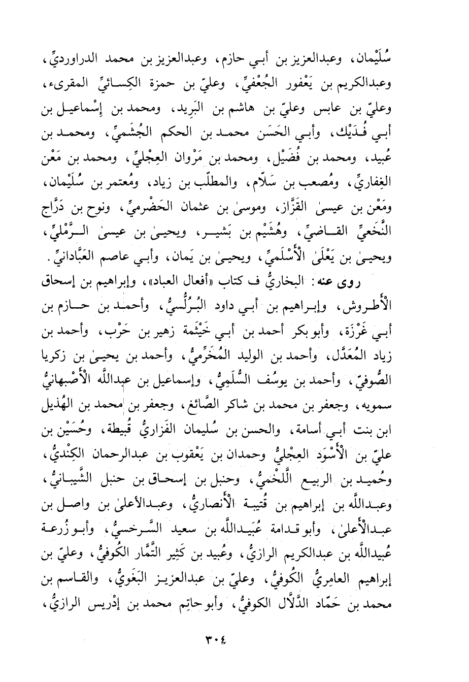 سُلَيْمان، وعبد العزيز بن أَبي حازم، وعبد العزيز بْن مُحَمَّد الدَّراوَرْدِيّ، وعبد الكريم بن يعفور الجعفي، وعلي بن حمزة الكسائي المقرئ، وعلي بن عابس وعلي بن هاشم بن البريد، ومحمد بْن إِسْمَاعِيل بْن أَبي فديك، وأبي الحسن محمد بن الحكم الجشمي، ومحمد بن عُبَيد، ومحمد بن فضيل، ومحمد بن مروان العجلي، ومحمد بن معن الغفاري، ومصعب بن سلام، والمطلب بن زياد، ومعتمر بن سُلَيْمان، ومعن بن عيسى القزاز، وموسى بن عثمان الحضرمي، ونوح بن دراج النخعي القاضي، وهشيم بن بشير، ويحيى بْن عيسى الرملي، ويحيى بن يَعْلَى الأَسلميّ، ويحيى بن يمان، وأبي عاصم العباداني.