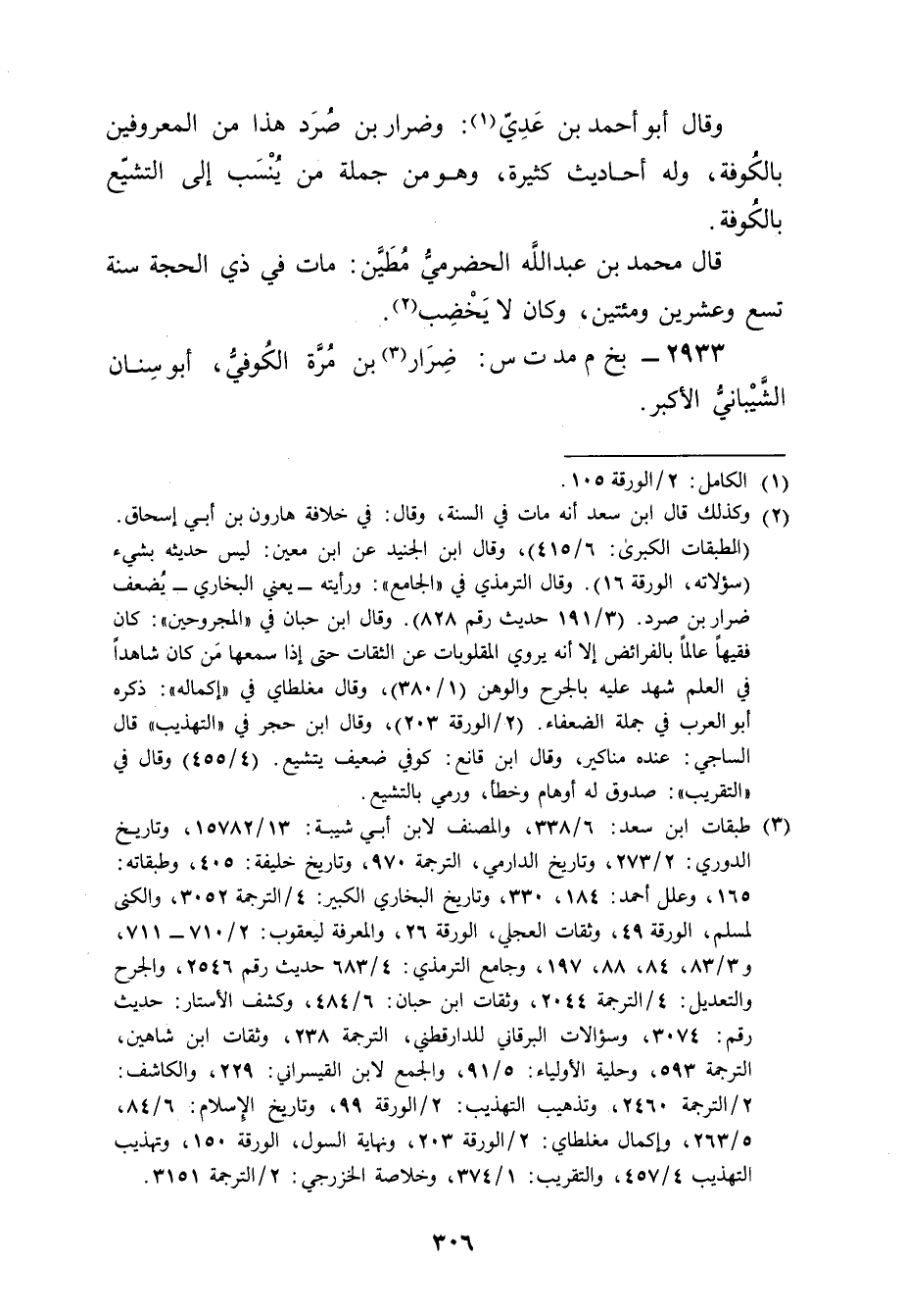 2933 - بخ م مد ت س: ضرار بن مرة الكوفي (3) ، أبو سنان الشيباني الاكبر.