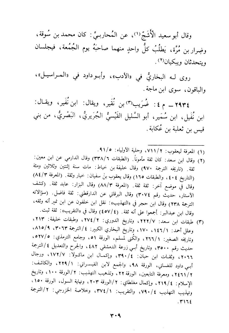 2034 - م 4: ضريب بن يقير (3) ، ويُقال: ابن نفير، ويُقال: ابن نفيل، ابن سمير، أبو السليل القيسي الجريري، البَصْرِيّ، من بْني قيس بْن ثعلبة بن عكابة.