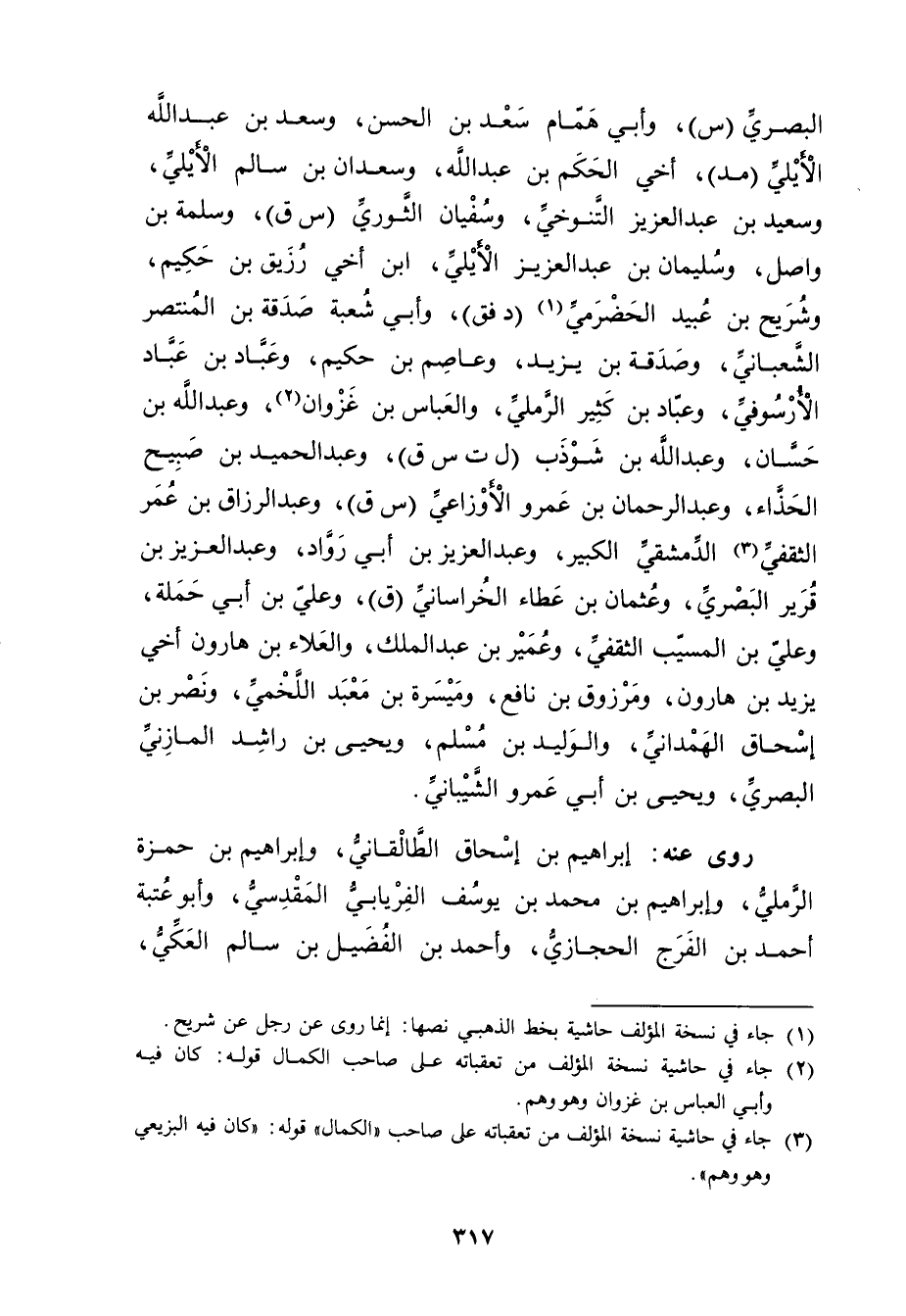 (3) جاء في حاشية نسخة المؤلف من تعقباته على صاحب "الكمال" قوله: كان فيه البزيعي وهو وهم".