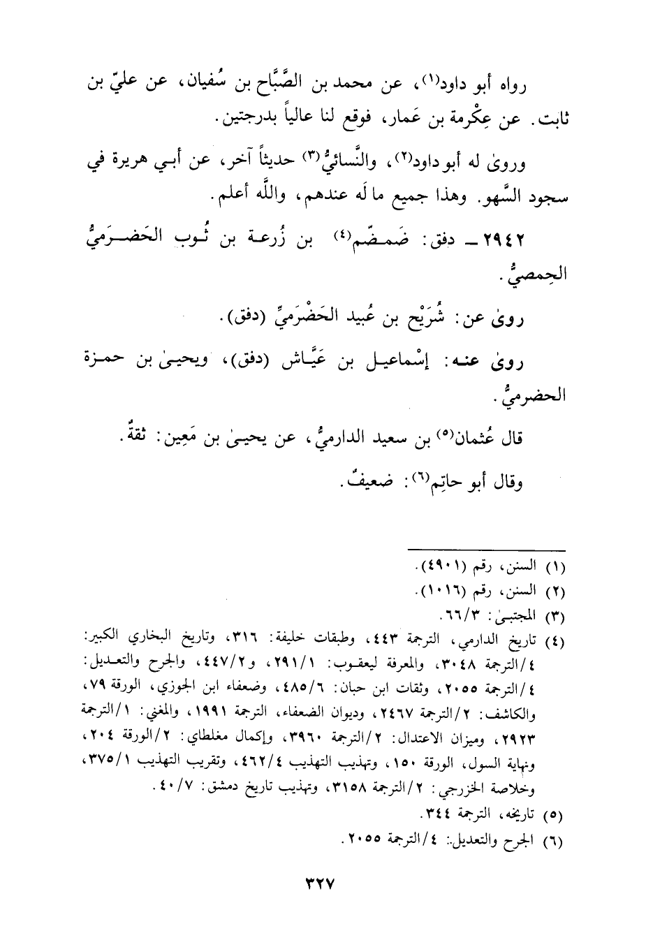2942 - دفق: ضمضم بن زرعة بن ثوب الحضرمي الحمصي (4) .