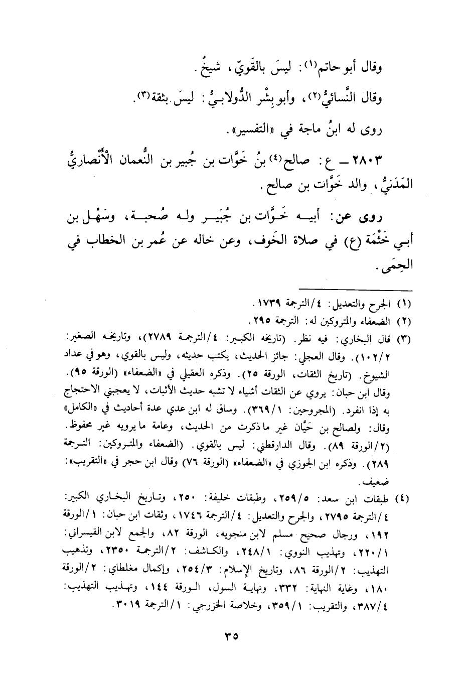 2803 - ع: صالح بْن خوات بْن جبير بن النعمان الأَنْصارِيّ المدني (4) ، والد خوات بن صالح.
