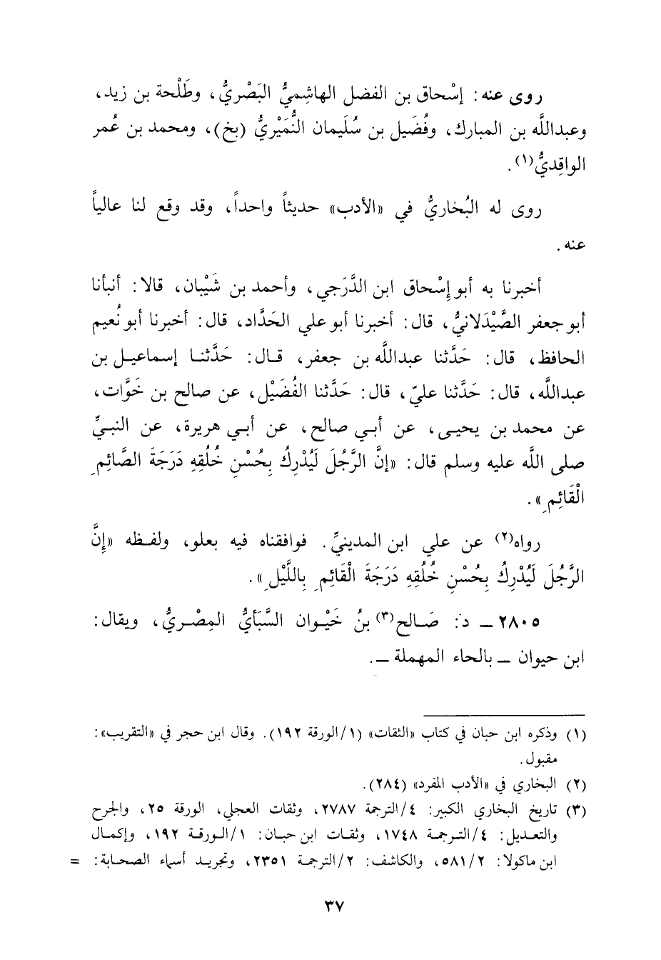 2805 - د: صالح بن خيوان السبأي المِصْرِي (3) ، ويُقال: ابن حيوان - بالحاء المهملة -.