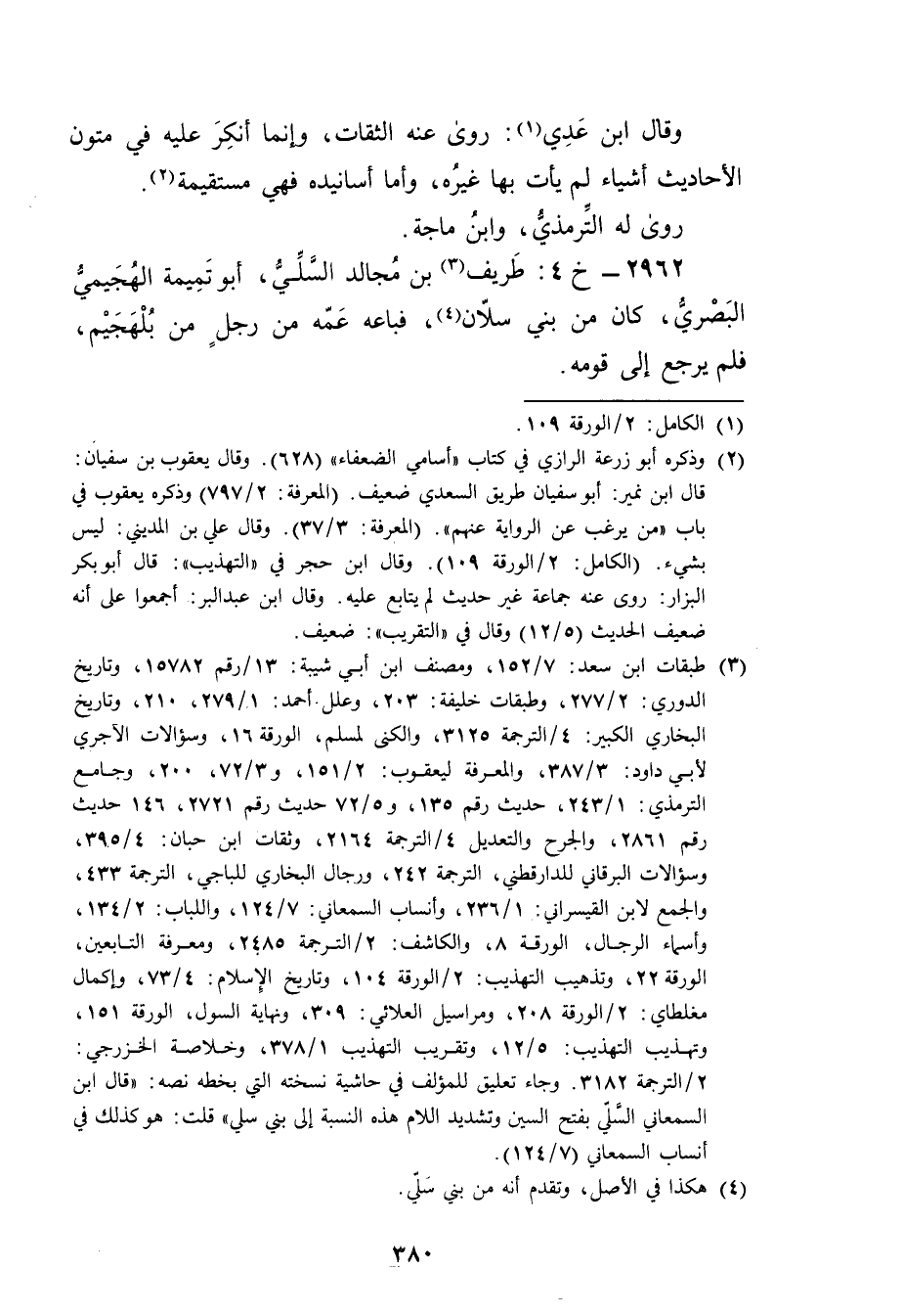 2962 - خ 4: طريف بن مجالد السلي (3) ، أبو تميمة الهجيمي البَصْرِيّ، كان من بني سلان (4) ، فباعه عمه من رجل من بلهجيم، فلم يرجع إلى قومه.
